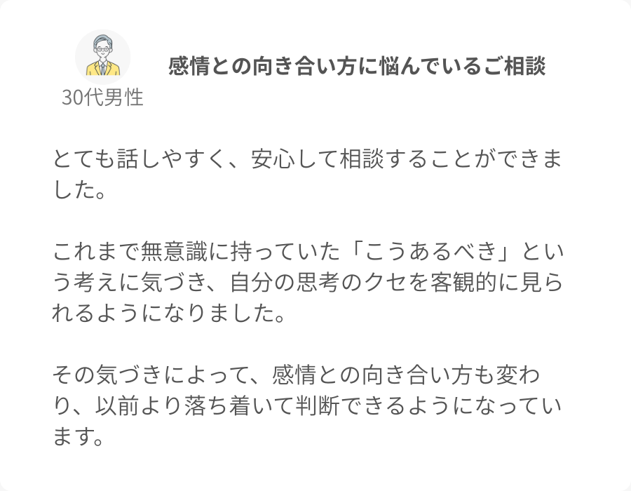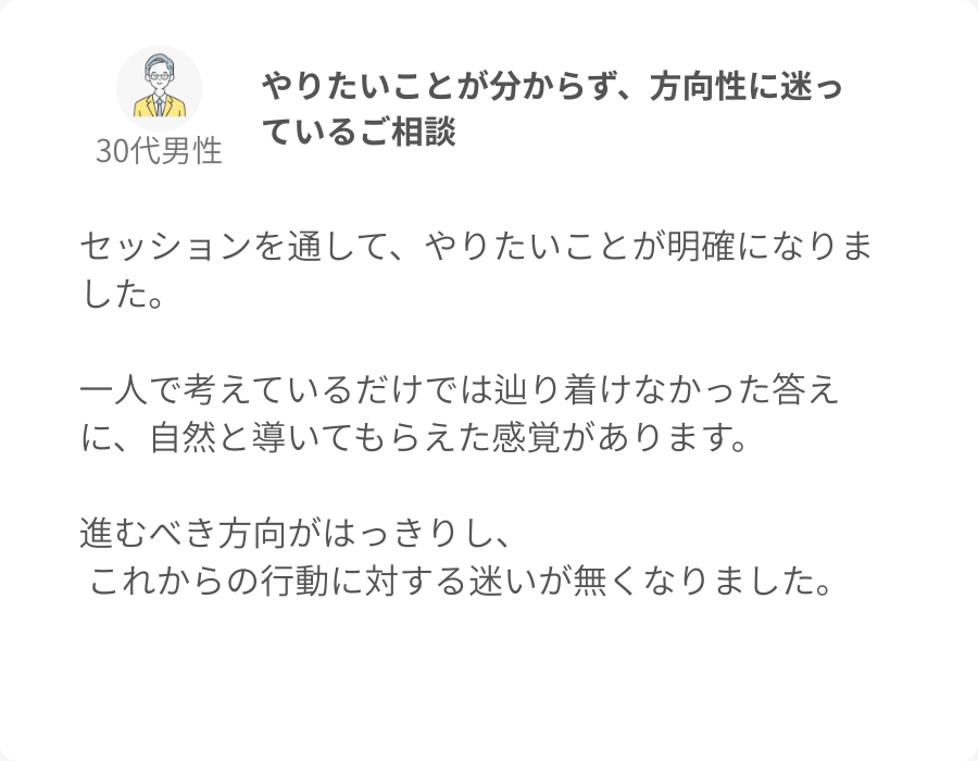 30分で「何に悩んでいるのか」と「次に何をすべきか」が整理されます。