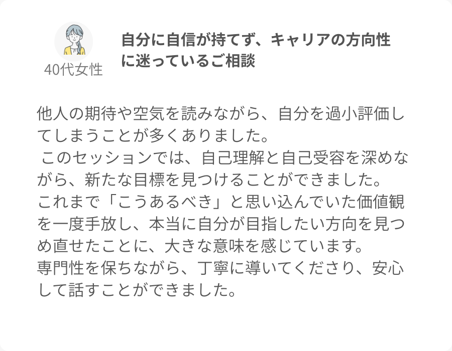 - 現在のキャリアに関するお悩みを整理し、状況を明確にします